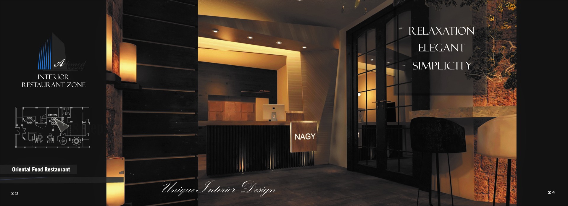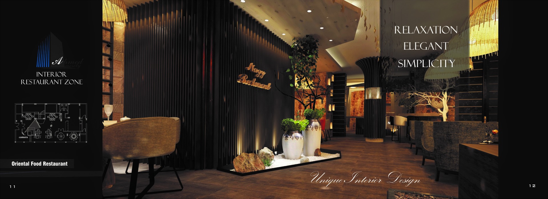 The restaurant is located in New Minia City, Egypt. The client's goal was to maximize the number of seats with simple interior design in a wooden feature. Four different zonings were designed to give multiple choices for the client to choose from (based on the number of seats).